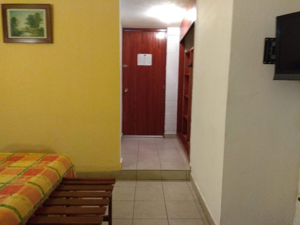 Nice room, pretty big, with the view to the garden with a swimming pool. Nice palm trees in the garden. Good internet. 660 pesso for a double room that sleeps 2-4 people. You can park the car in front of the room.